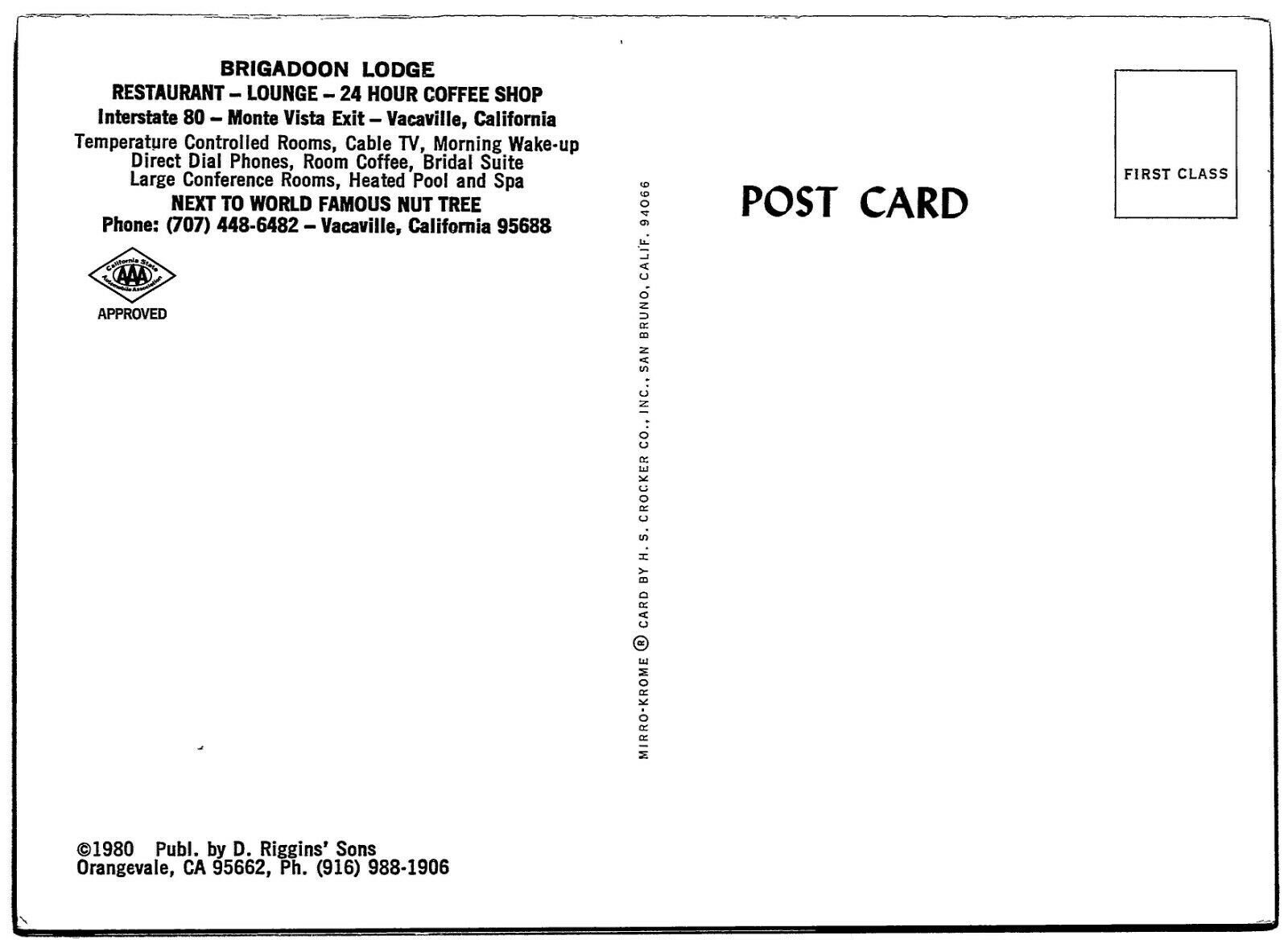 Brigadoon Lodge & Restaurant Vacaville CA - Postcard