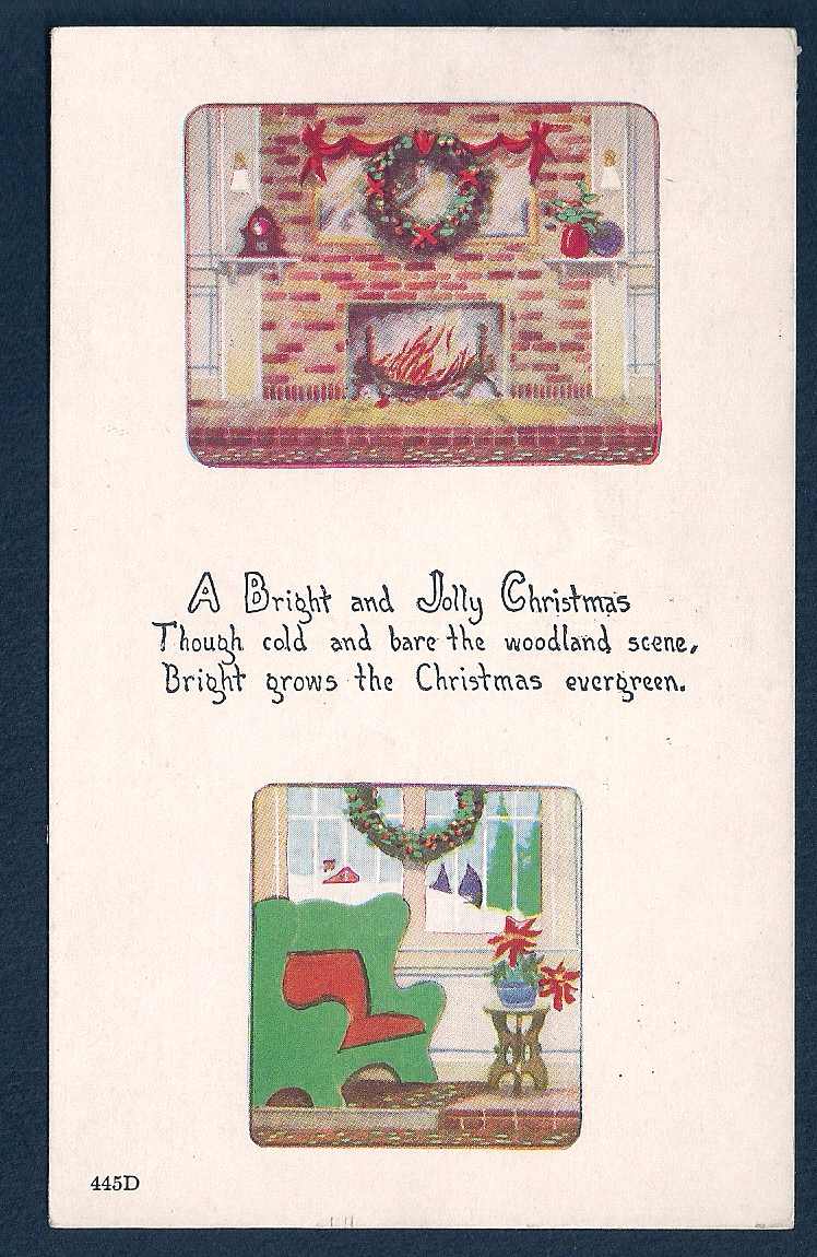 \"Bright & Jolly Christmas\" Blazing Fireplace used c1922