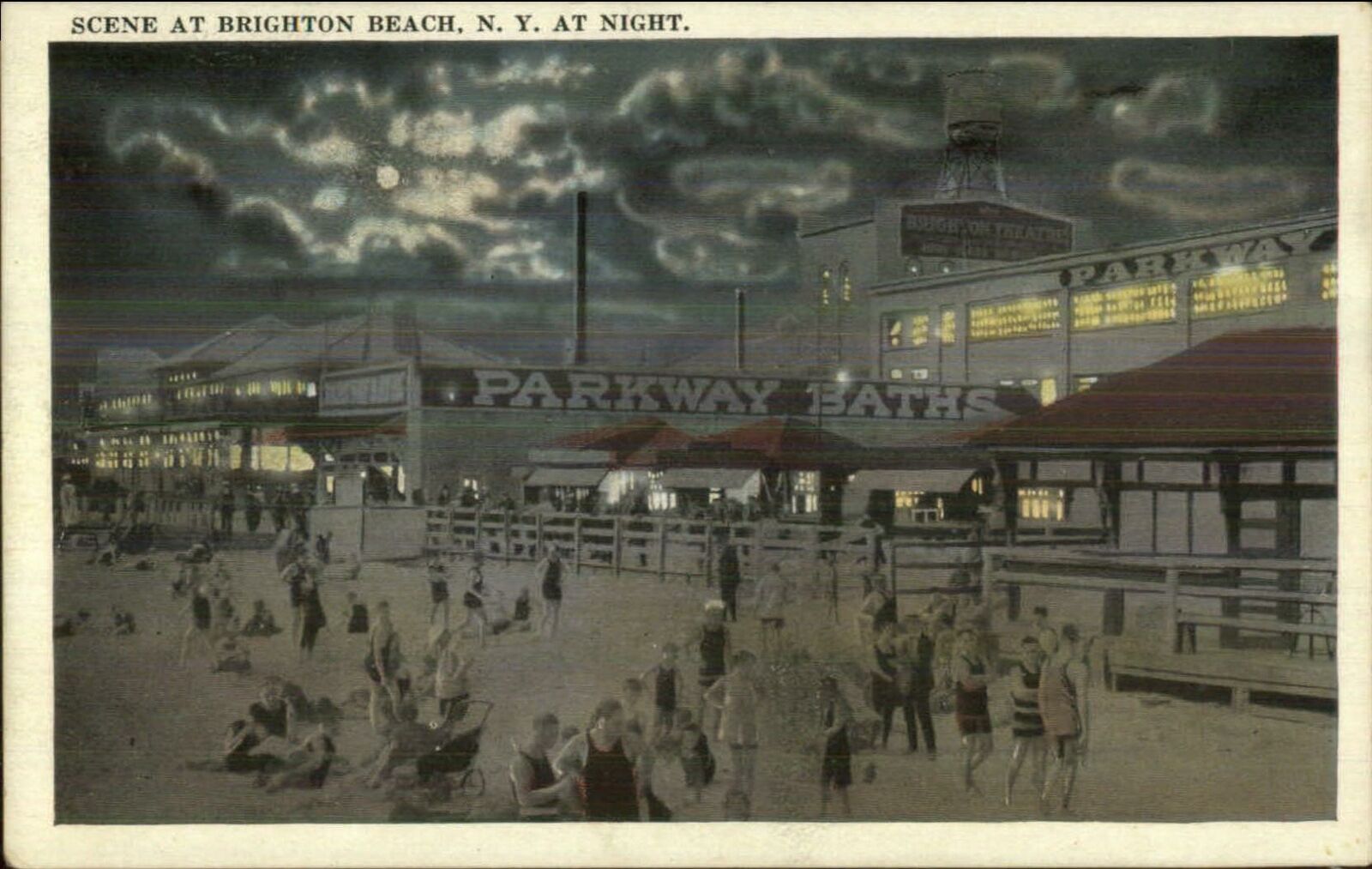 Brighton Beach Buildings & Beach at Night c1920 Postcard