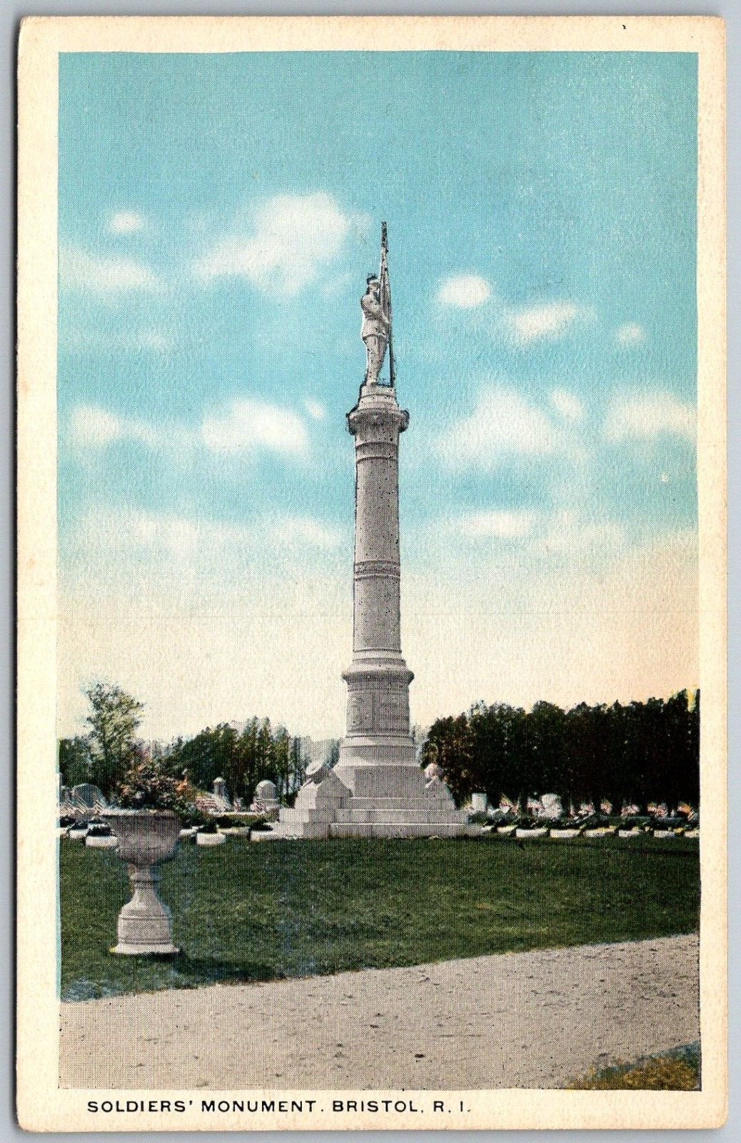 Bristol Rhode Island 1920s Postcard Soldiers Monument