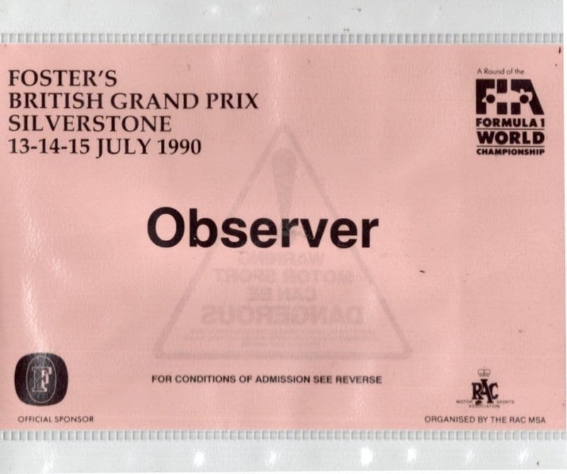 British Grand Prix 1990 Silverstone Private Observer Exclusive Pass