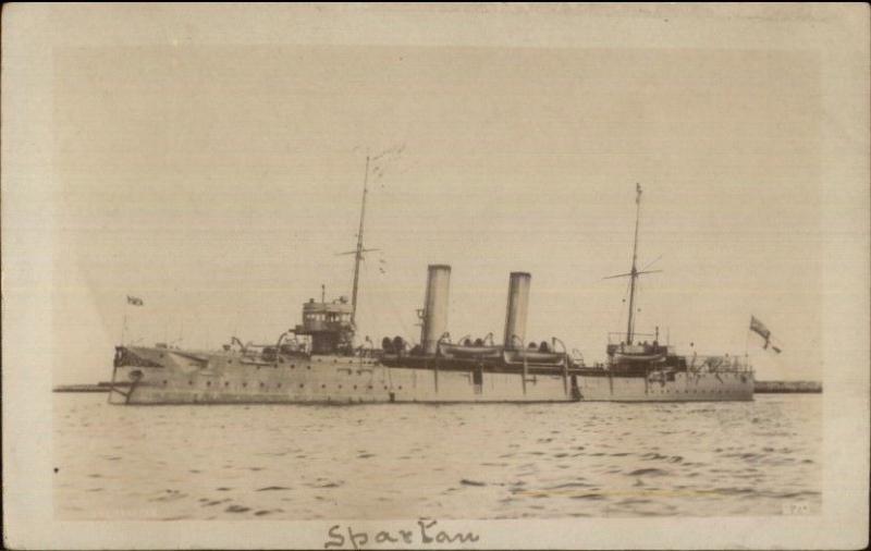British Naval Battleship Spartan Ship c1910 Real Photo Postcard