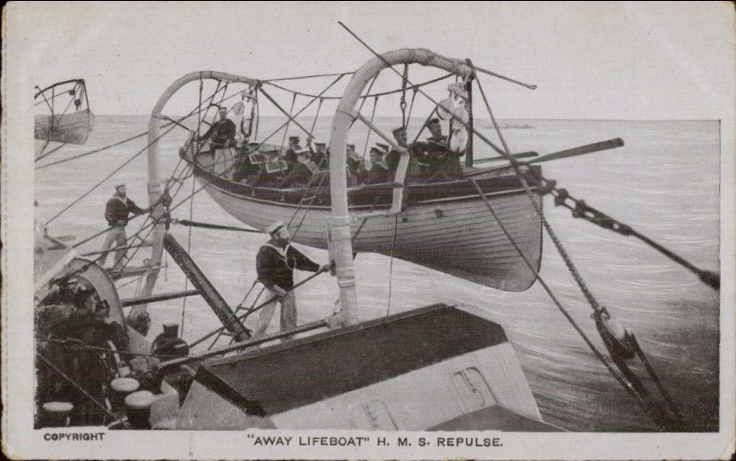 British Navy Lifeboat of HMS H.M.S. Repulse c1910 Postcard