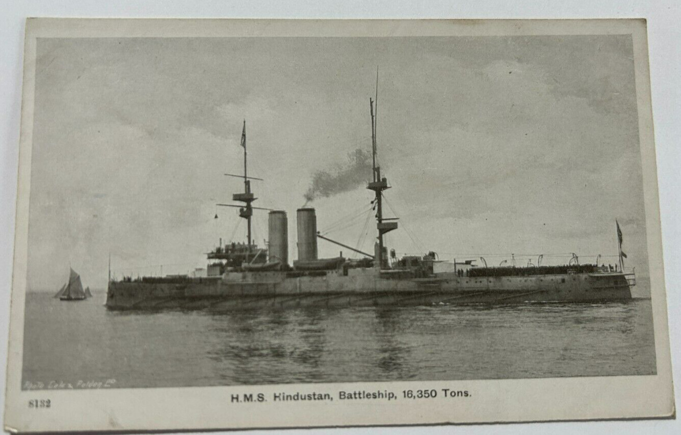 British Royal Navy HMS Hindustan RPPC Postcard WWI c.1910s