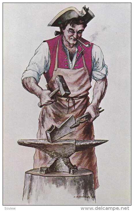 British Soldier - Blacksmith of 1757 , 50-60s :: Postcard , 3.5 by 5.5 , Chrome , Ex