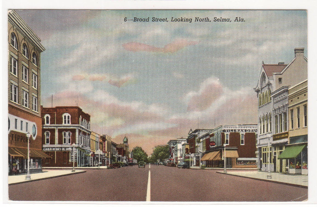 Description: Broad Street Selma Alabama 1952 postcard Type: chrome Condition: very good+, light corner wear, bottom right corner tip crease Any hatched effect is scanner effect, not on actual picture on card. Postal Use: unused, unposted MORE POSTCARDS IN MY STORE - THE POSTCARD DEPOT Track Page Views WithAuctiva's FREE Counter