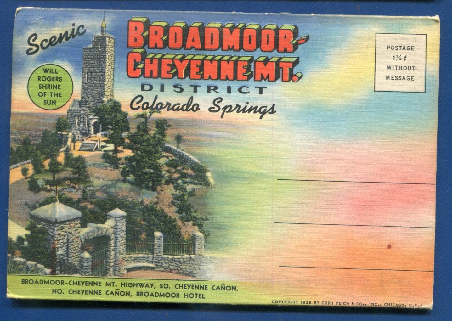 Broadmoor Cheyenne MT district Colorado Springs co Will Rogers postcard folder