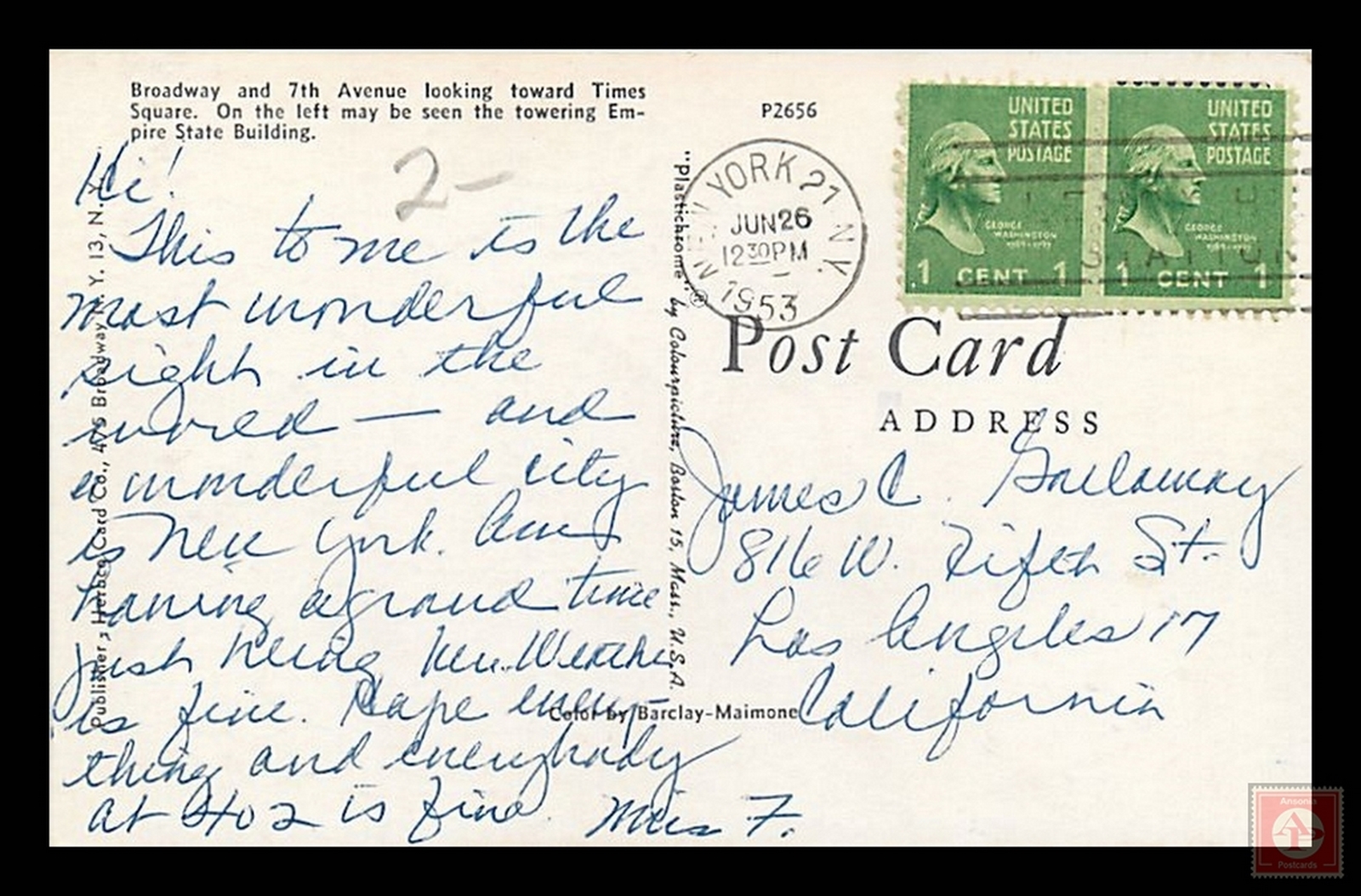 Some scans of postcards result in colored streaks which are a result of the error in scanning and not a fault of the postcard.