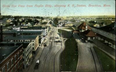 Brockton MA Bird-eye View Street Scene c1910 Postcard