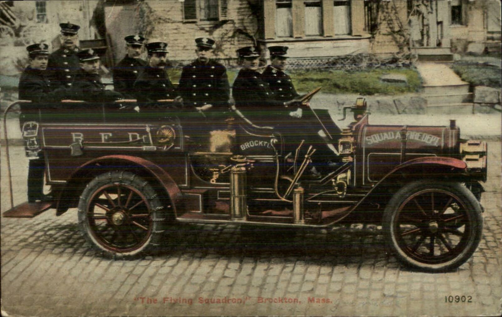 Brockton MA Flying Squadron Fire Engine & Crew c1910 Postcard