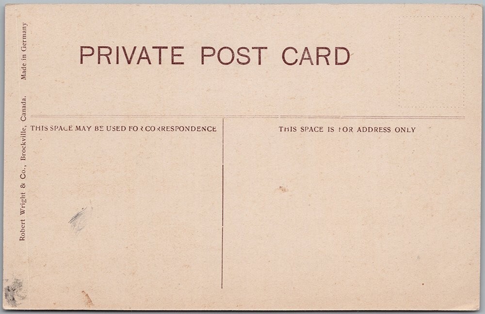 Discover a vintage postcard showcasing the stately Public Library in Brockville, Canada, captured in an early 20th-century hand-colored print. This architectural gem is depicted with its grand columns, classical pediment, and distinctive stone foundation, offering a glimpse into the city's rich history and civic pride. The scene includes charming details such as figures on the street and period-appropriate awnings adorning the windows, all rendered with the artistic quality characteristic of early postcard production.This collectible piece was produced by Robert Wright & Co. of Brockville and expertly printed in Germany, a testament to the era's global collaboration in postcard manufacturing. The vibrant, hand-colored details bring a unique charm to the scene, highlighting the building's features and the surrounding streetscape. It's a prime example of historical Canadian ephemera, perfect for collectors interested in Brockville history, early 20th-century architecture, or vintage Canadian postcards.Please zoom into and look closely at the front and back photos to view condition and feel free to send me a message if you have any questions. Thanks kindly for viewing, D
