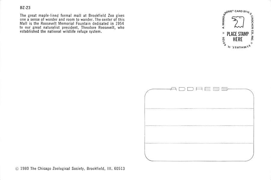 Brookfield Zoo - Illinois Grade: 1 Category: Continental Size Postcard, Approx 4 in x 6 in (10 cm x 15.25 cm) Product Size: Continental size: 4X6 inches (10.5 cm x 15 cm) Grading Scale: Grade 1 = Perfect corne ... Read More