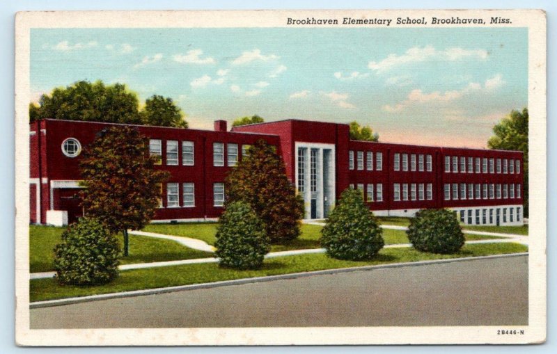 BROOKHAVEN, Mississippi MS ~ ELEMENTARY SCHOOL 1941 Lincoln County Postcard