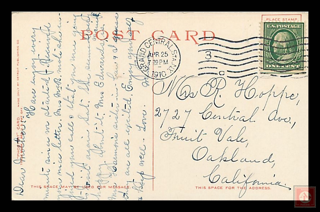 Some scans of postcards result in colored streaks which are a result of the error in scanning and not a fault of the postcard.