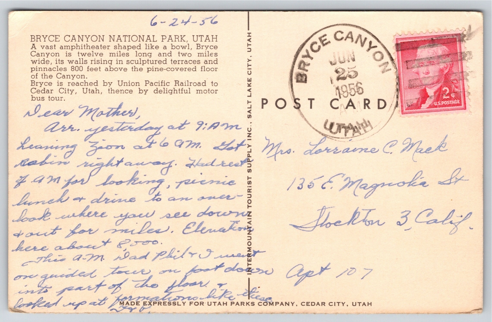 Bruce Canyon Park Utah~Air View Ampitheater Rocks~Vintage Postcard