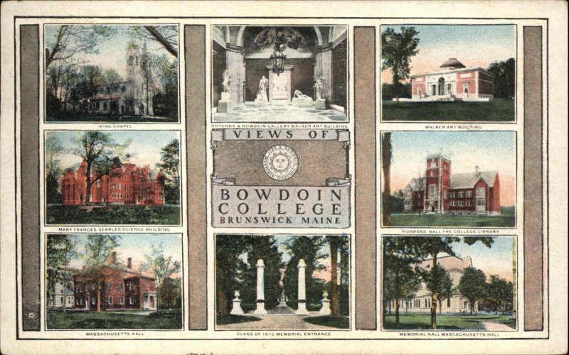 BRUNSWICK ME Bowdoin College Views c1920 Postcard