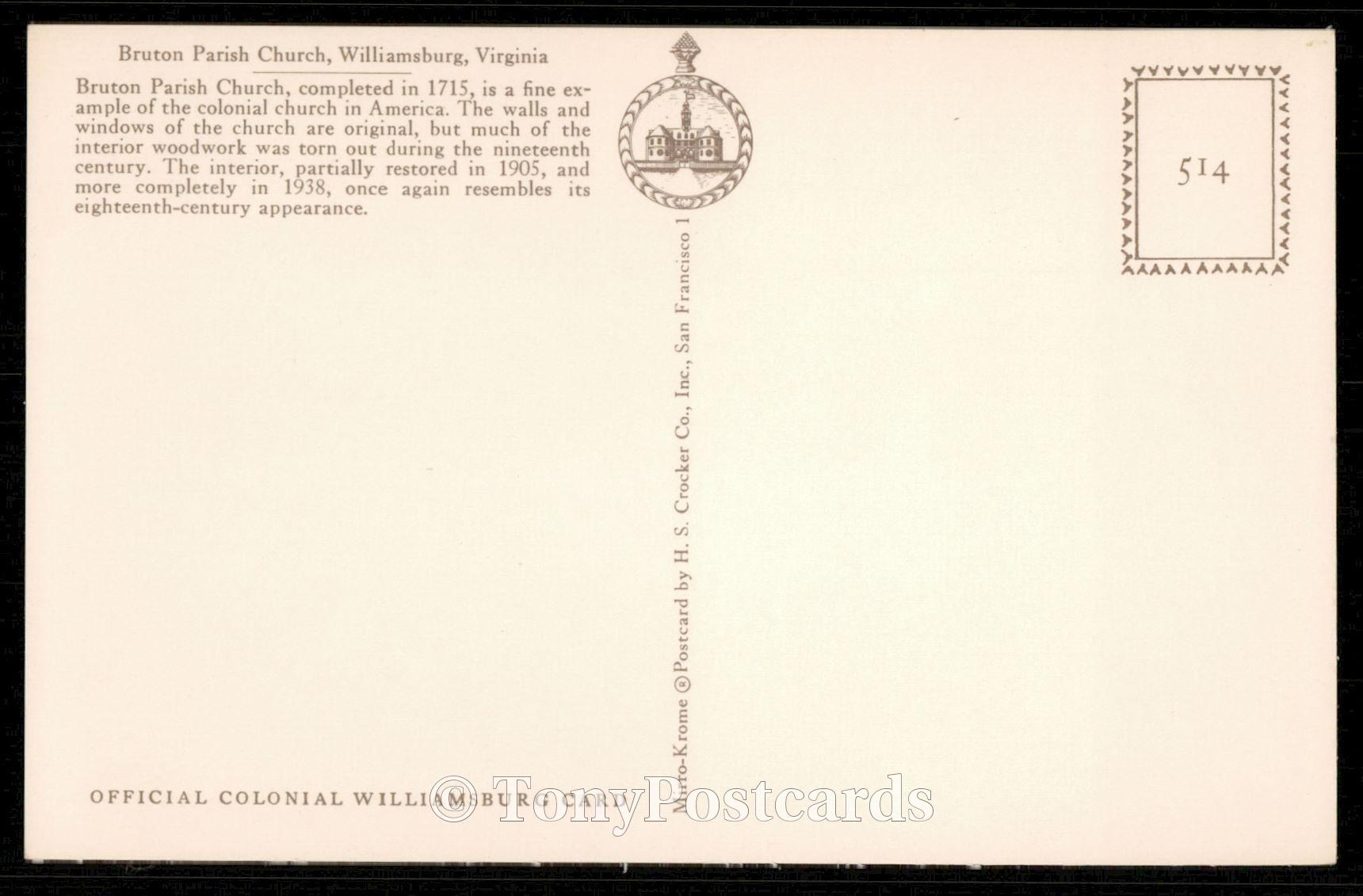 Title: BRUTON PARISH CHURCH, WILLIAMSBURG Condition: See scans