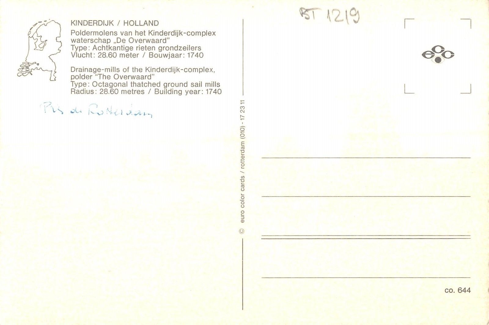 BT1219 windmolen windmill mill kinderdijk netherlands