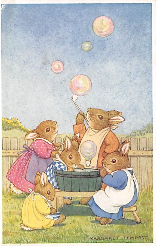 Bubbles, Margaret Tempest Rabbit Postcard Writing on back, Grade: 3, , Size: Regular size: Approx 3 1/2 X 5 1/2 inch (9 cm X 14 cm) Grading Scale: Grade 1 = Perfect corners Grade 2 = Very Minimal corner wear, ... Read More