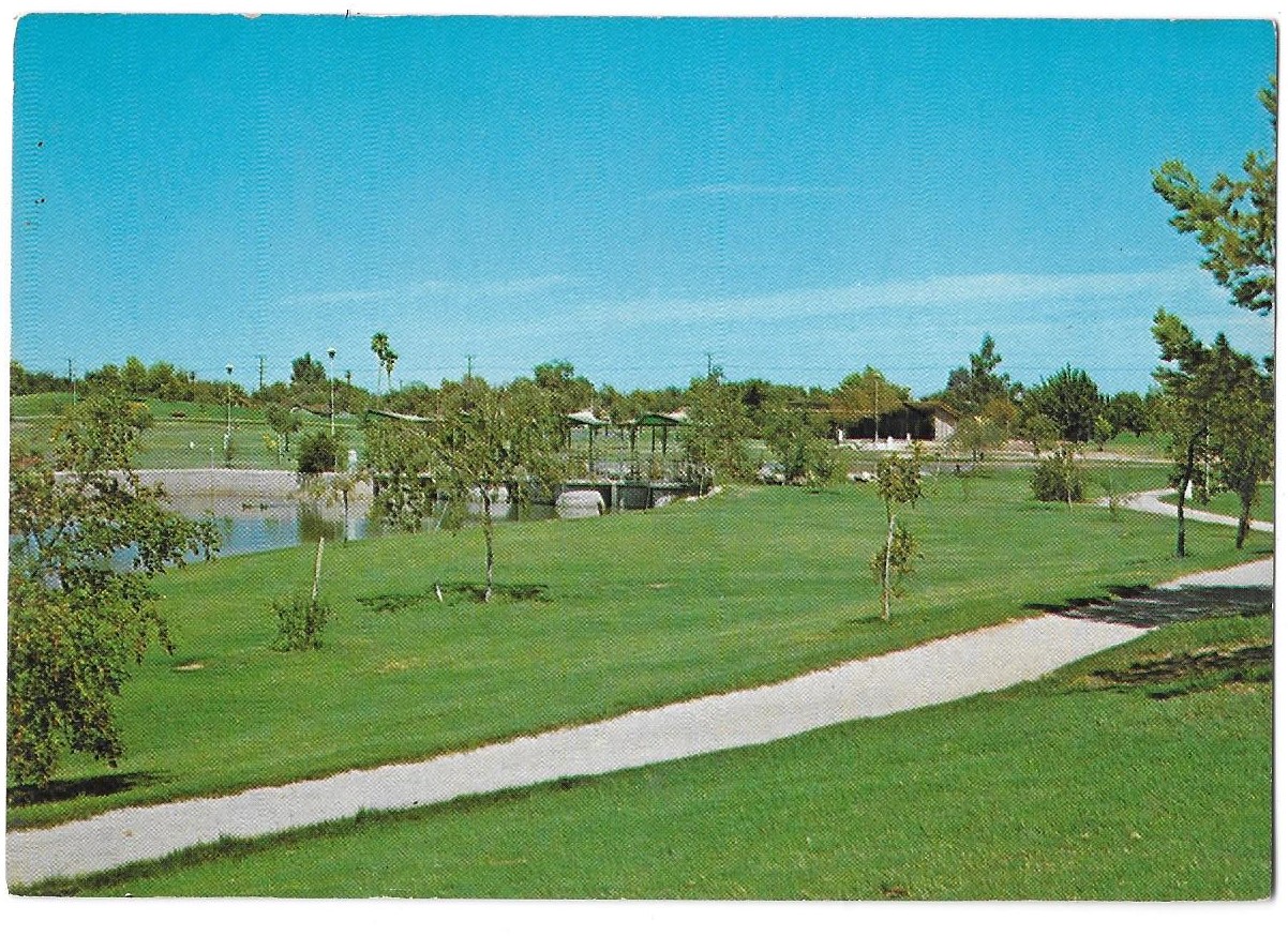 A view of Bucklin Park El Centro California. Paper on back side has yellowed. 4 by 6 card