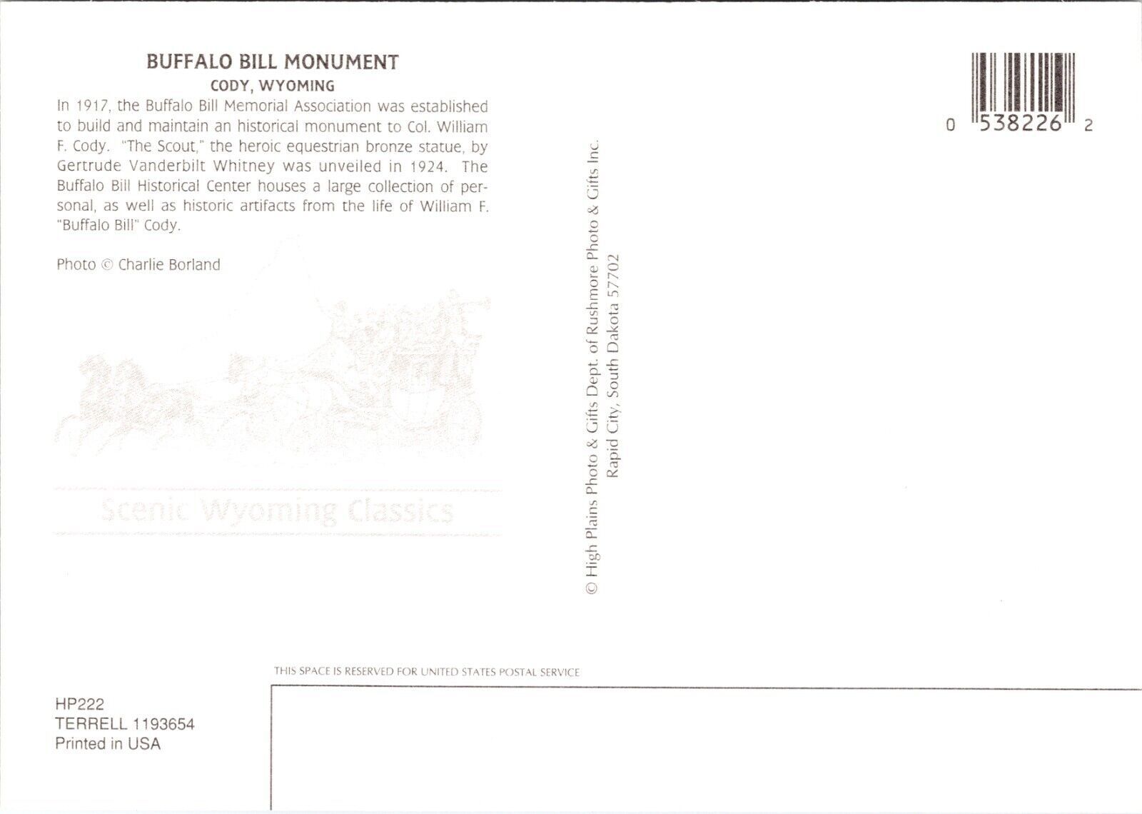 Buffalo Bill Monument Cody Wyoming POSTCARD