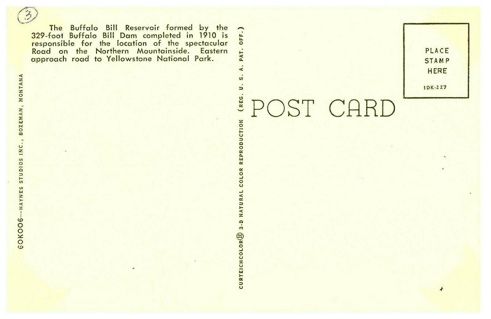 Buffalo Bill Reservoir Dam & Mountainside Road Postcard