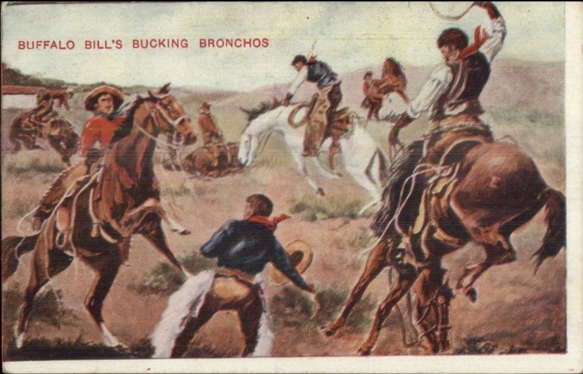 Buffalo Bill's Bucking Bronchos Circus Cowboy Show c1910 Postcard