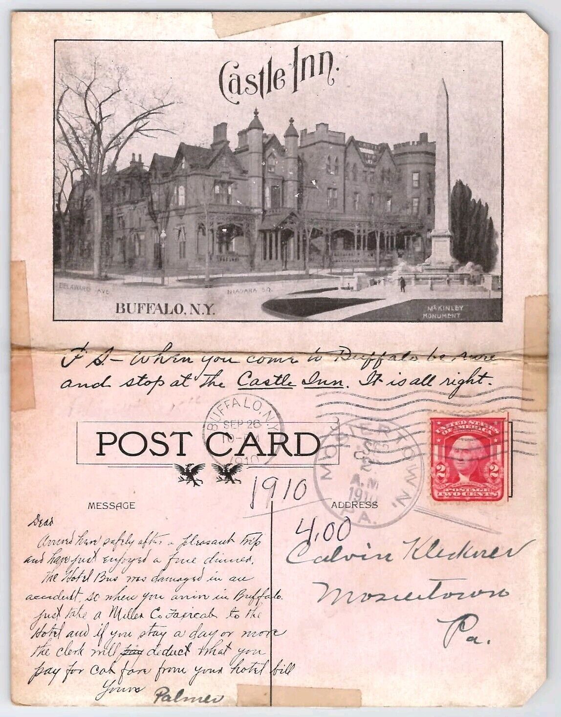 Buffalo NY Castle Inn 1910 Dinner Menu Adv Miller Taxicab Bi-Fold Postcard D48