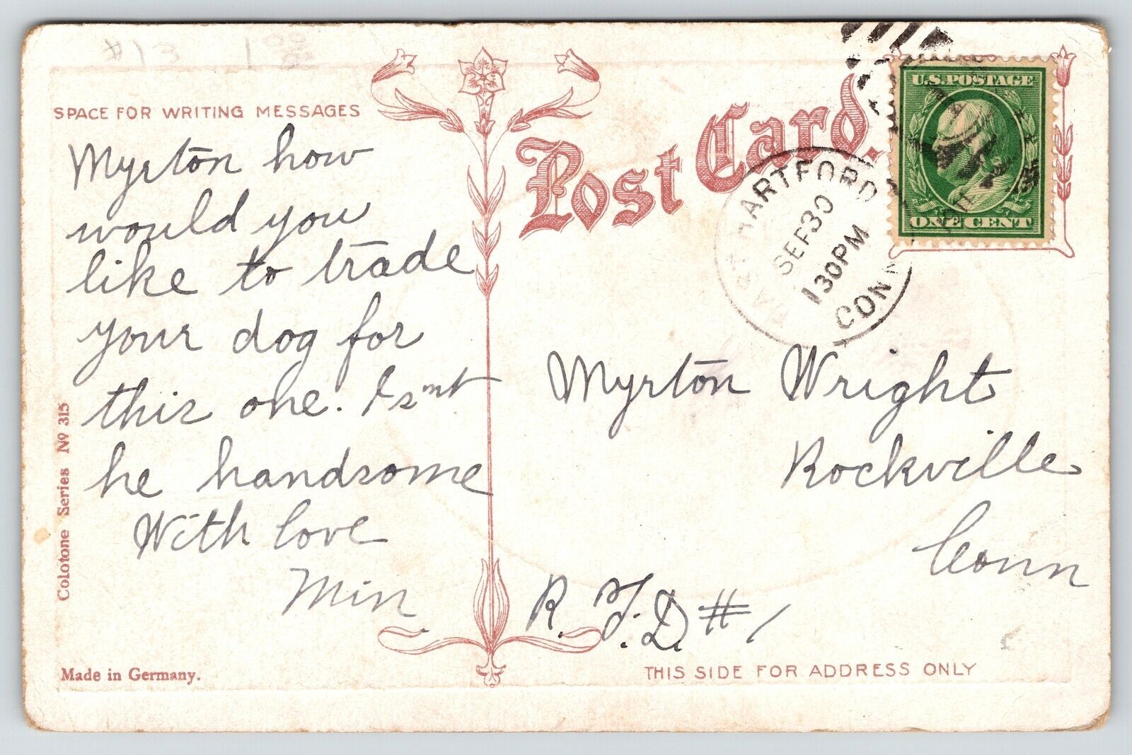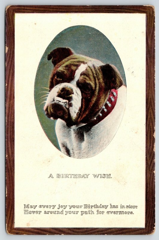 Bulldog Portrait~Serious Underbite~Red Stud Dog Collar~Circle Embossed~1909