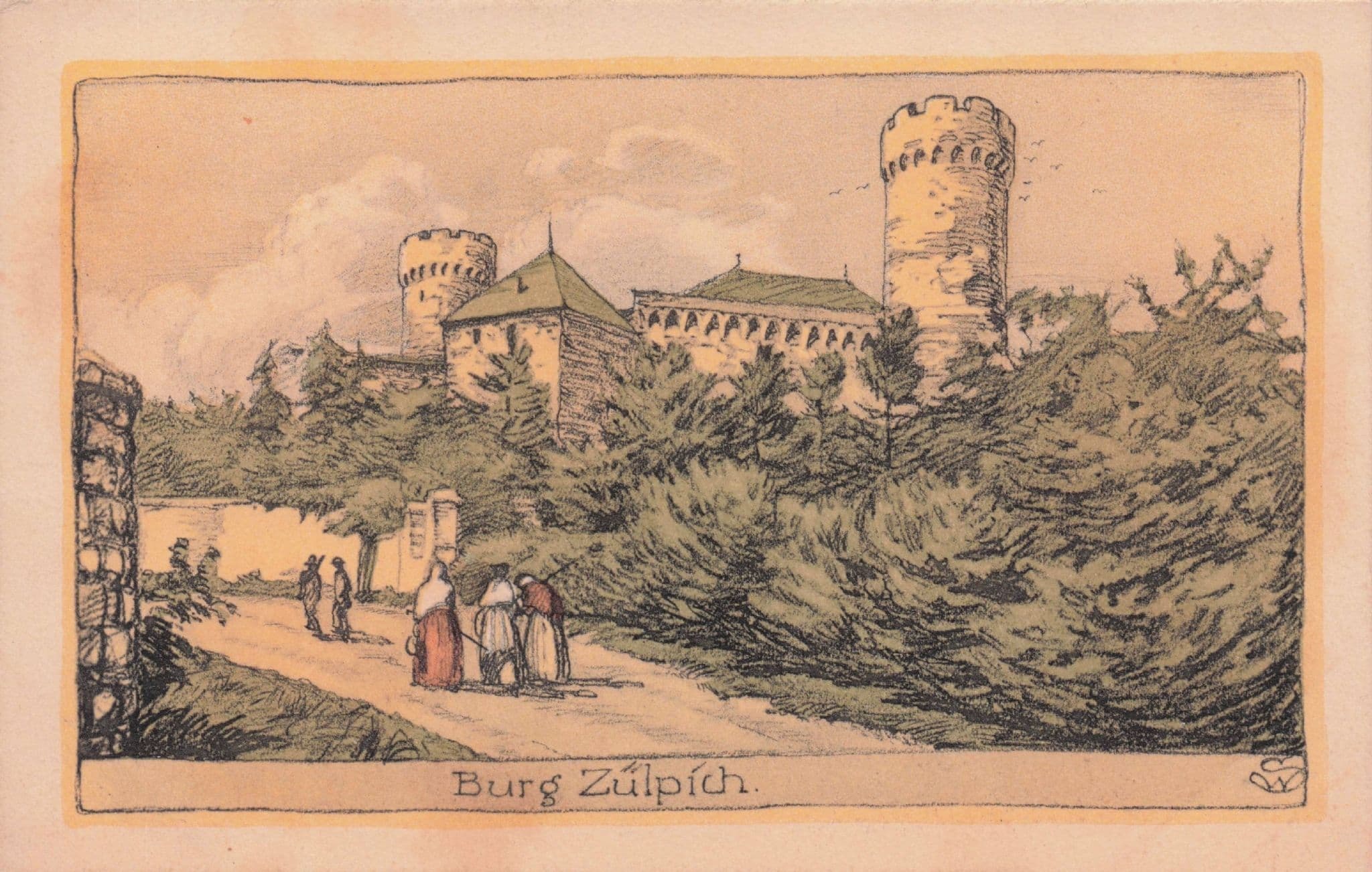 Burg Zulpich German Antique Painting Postcard
