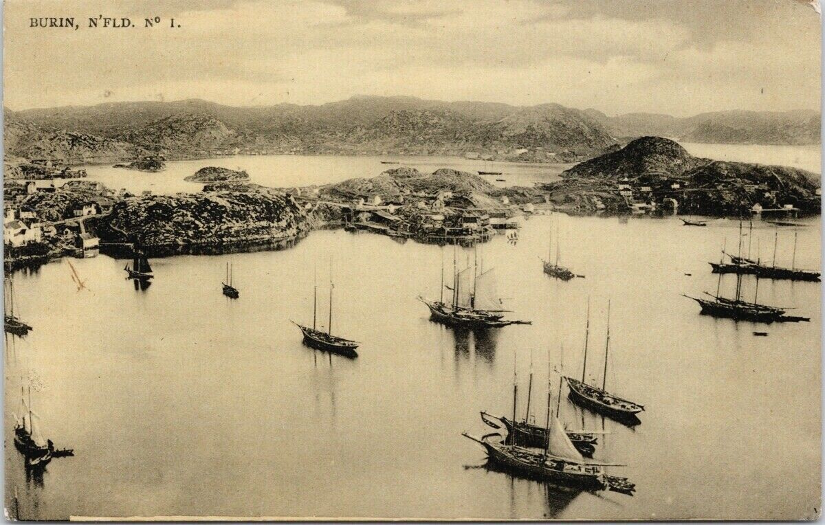 Burin Newfoundland NL Boats Birdseye Dicks & Co Postcard E96