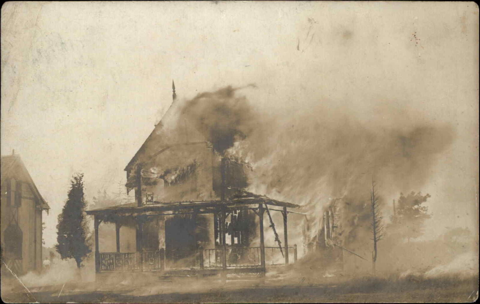 Burning Building Fire Crescent Beach CT Cancel 1908 Real Photo Postcard