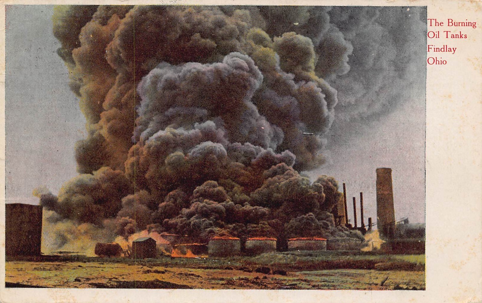 Burning Oil Tanks Findlay Ohio 1909 postcard