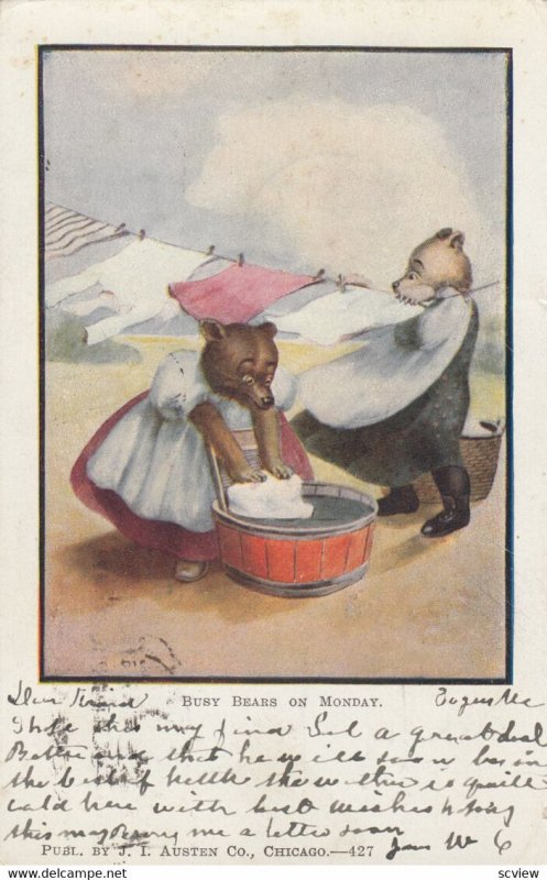 Busy Bears on Monday , Laundry , 1907 :: Postcard, 3.5 by 5.5, Litho