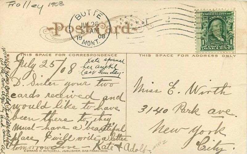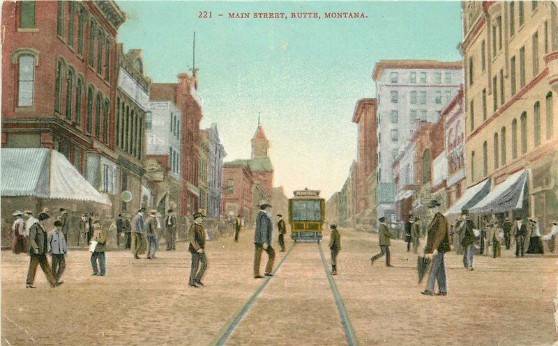 Butte Montana Mitchell 1908 Main Street Trolley #221 Postcard
