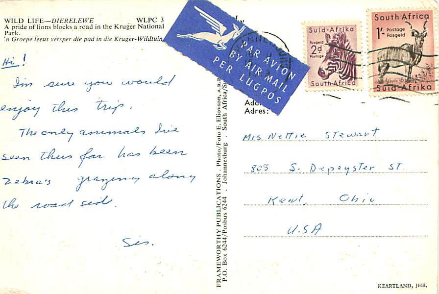 Category: Postcards / Topical / Subjects > Animals|Postcards / World / Global > Africa