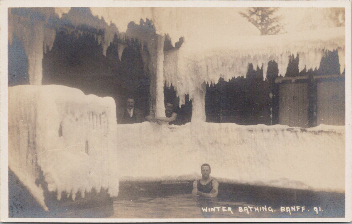 Byron Harmon #91 Banff Alberta Winter Bathing Hot Sulphur Springs Man Pool Unused RPPC Postcard E82Please message me with any questions and thanks for viewing. DL