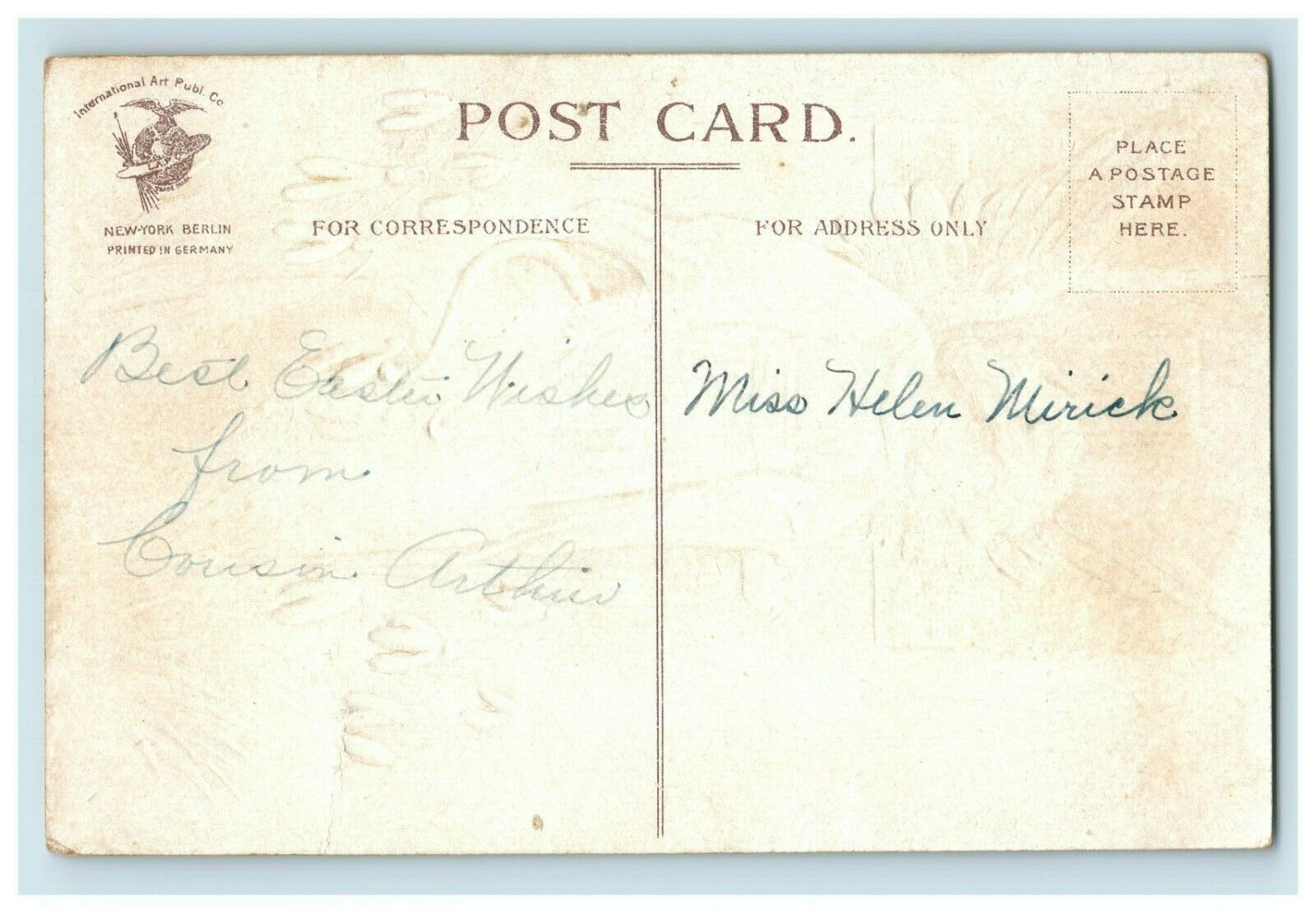 Up for auction is an original vintage card in good condition, for its age. I have thousands of other paper items up right now including: labels, postcards, photos of all types, as well as a large assort of Victorian Labels, Trade Cards, and Print Ads. Please see the images of the actual item above for a better idea of the condition. The winner will pay postage and tracking, which is included in the shipping total. The packed card will weigh around two and a half ounces, as I pack with thick cardboard to assure the card arrives safely. I am always happy to combine shipping whenever possible. Check out my other items! Be sure to add me to your favorites list! Sign up for my email newsletters by adding my Hip Store to your Favorites Please contact me with any issues prior to leaving negative/neutral Feedback or low detail ratings, as I will always do my best to solve any problems that may come up!