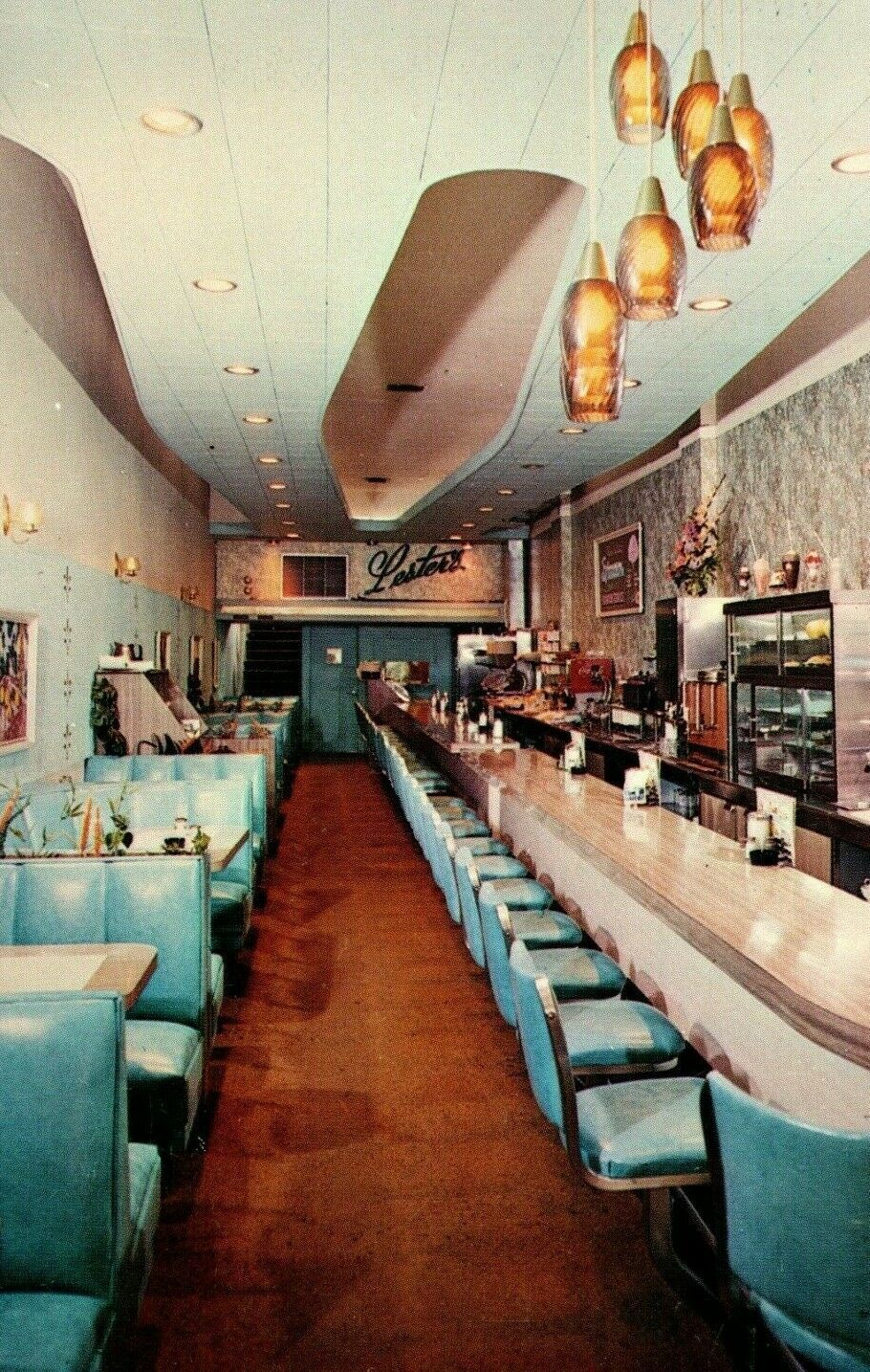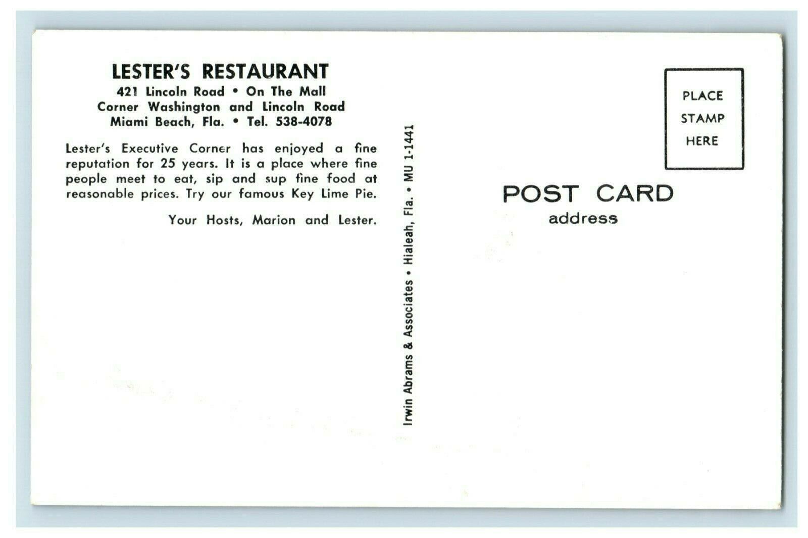 c. 1940 Lester's Restaurant Miami Beach Inside View Mod, FL. Postcard P31