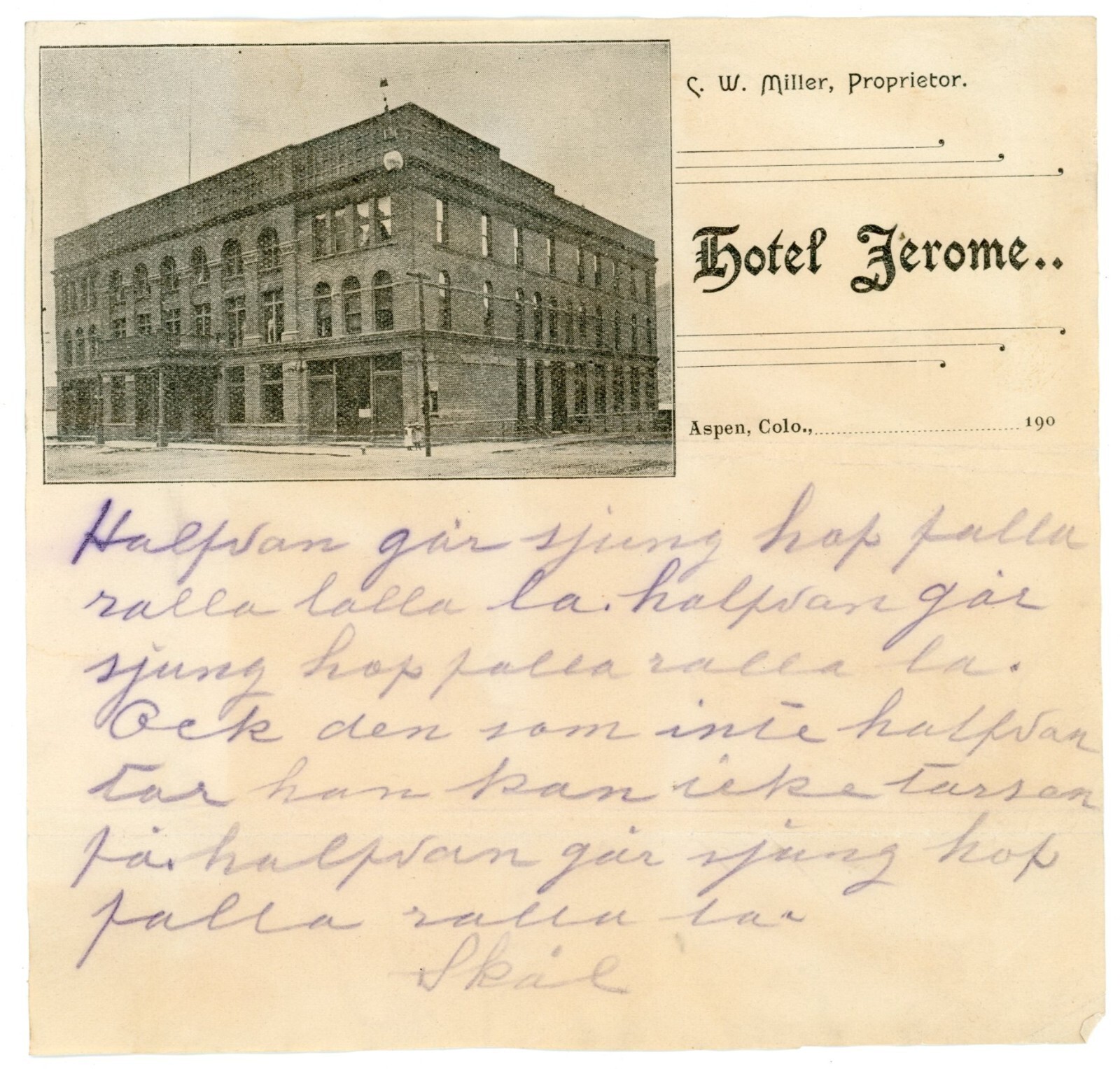 c1900 Hotel Jerome Aspen, CO Letter Head #DE