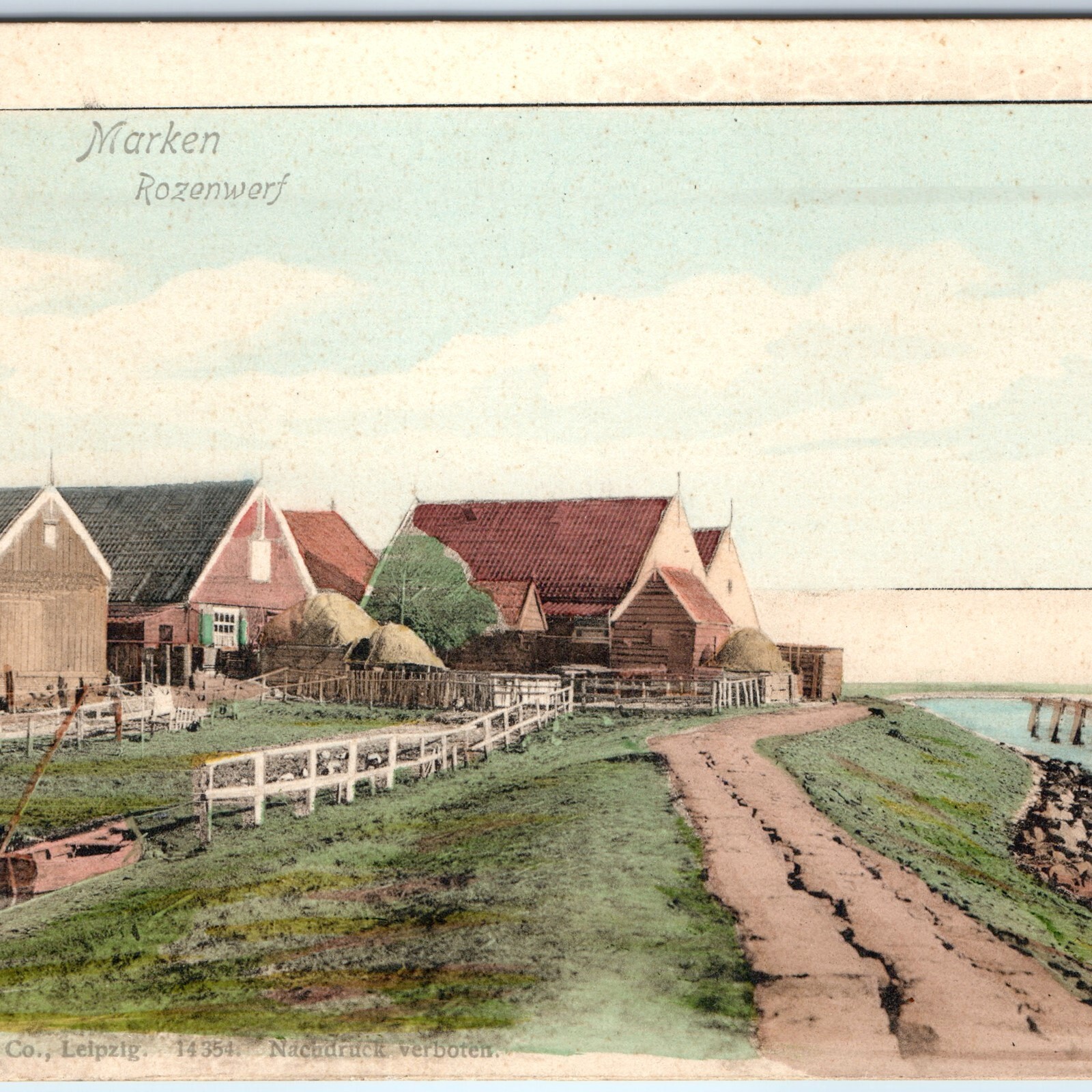 c1900s Marken, Netherlands Rozenwerf Farm Buildings Waterside Path PC A342