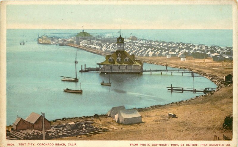 c1904 Postcard Tent City, Coronado Beach CA Pier & Boat Docks unposted