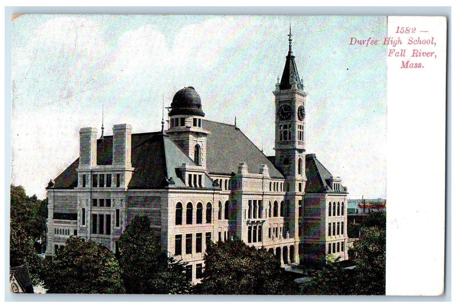 c1905 Durfee High School Campus Building Clock Tower View Fall River MA Postcard