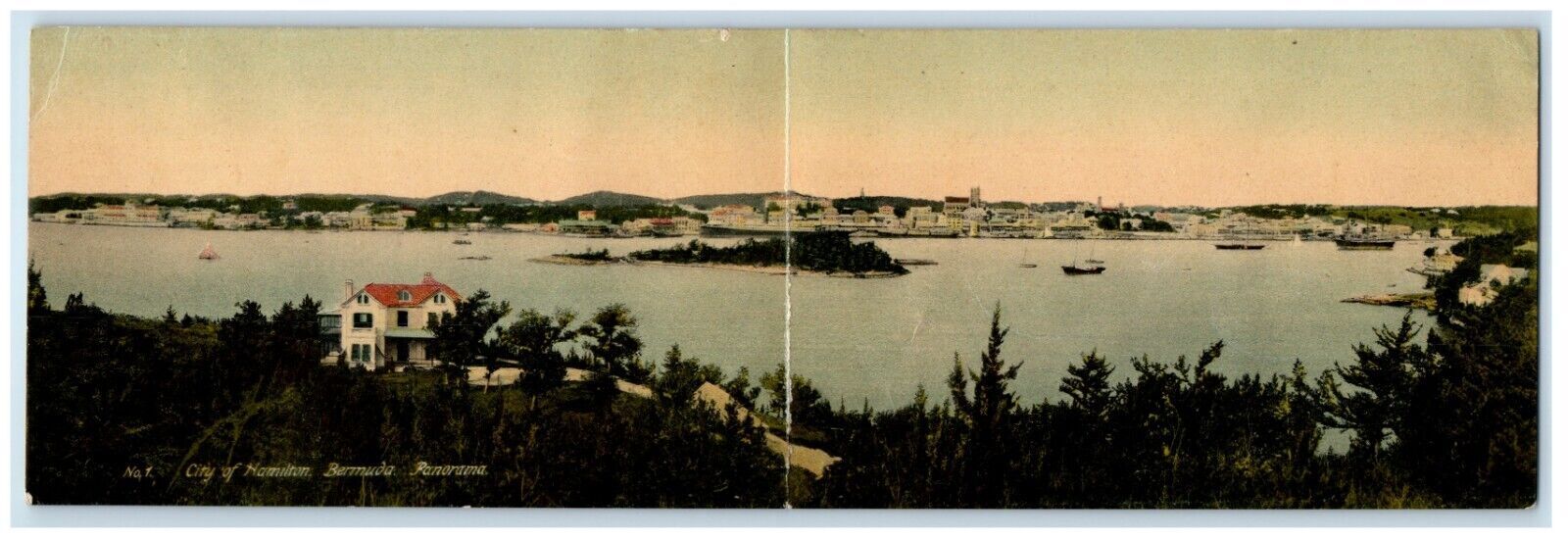 c1905 Fold Out Panorama Hamilton Bermuda Bird's Eye View Unposted Postcard