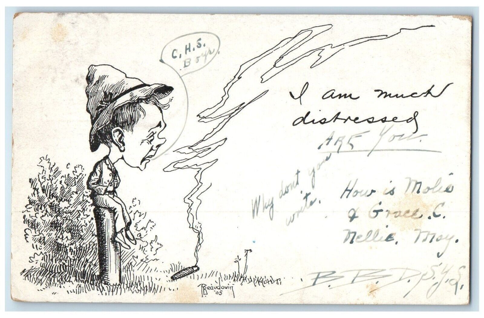 c1905 Man Caricature Cigarette Distressed Worcester Massachusetts MA Postcard