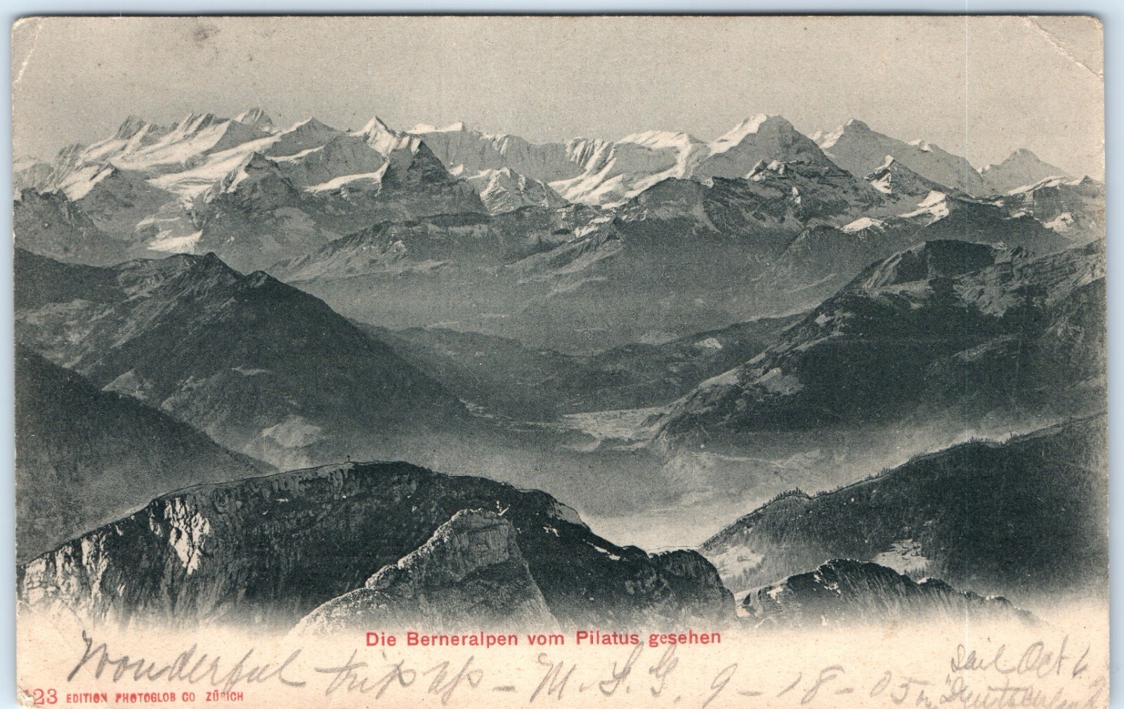 c1905 Postcard Pilatus, Switzerland Bernese Alps Mountain Range Panoramic A368