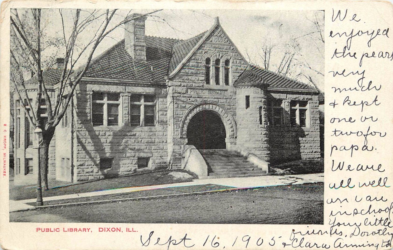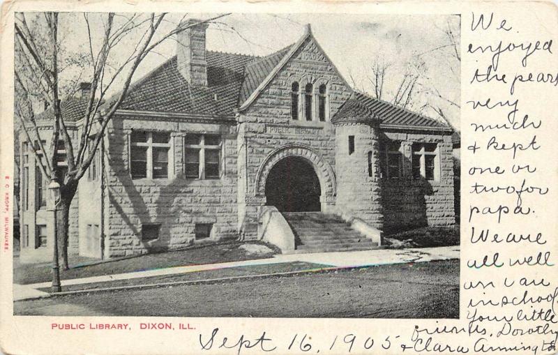 c1905 Printed Postcard Carnegie? Public Library Dixon IL Lee County Posted