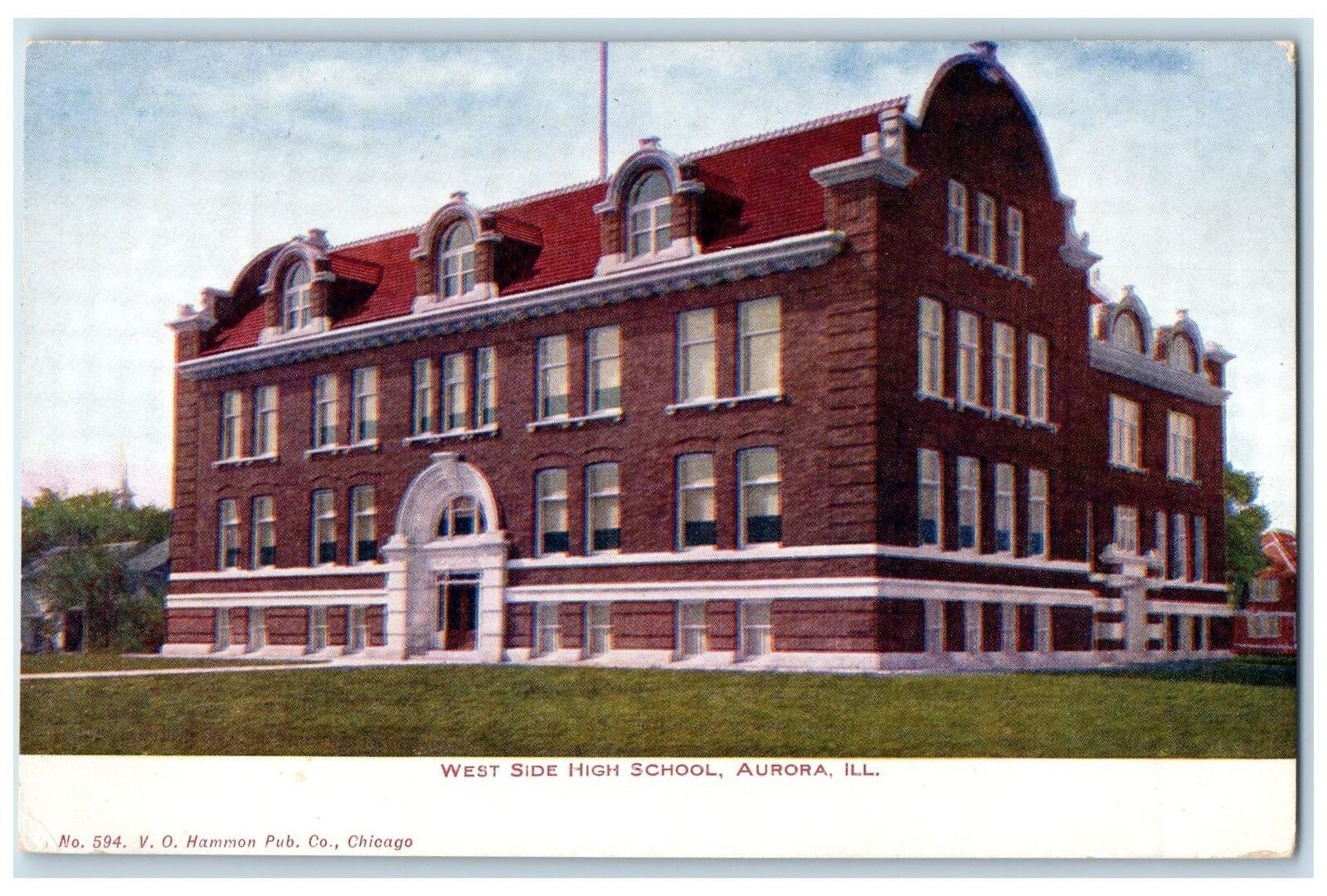 c1905 West Side High School Campus Building Side View Aurora Illinois Postcard