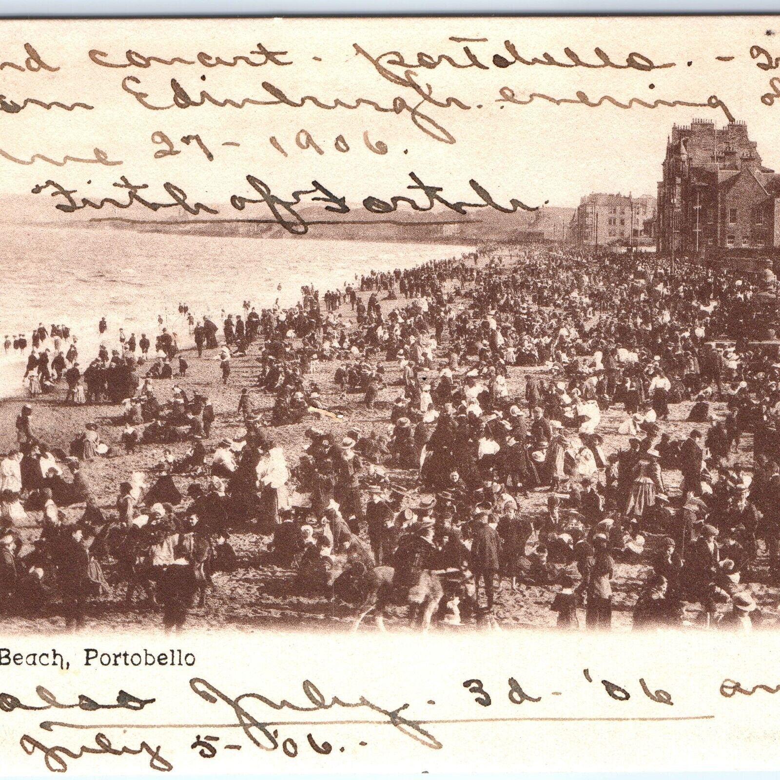 c1906 Portobello Beach, Scotland Crowd Vello Photo Postcard w/ Unused Stamp A71