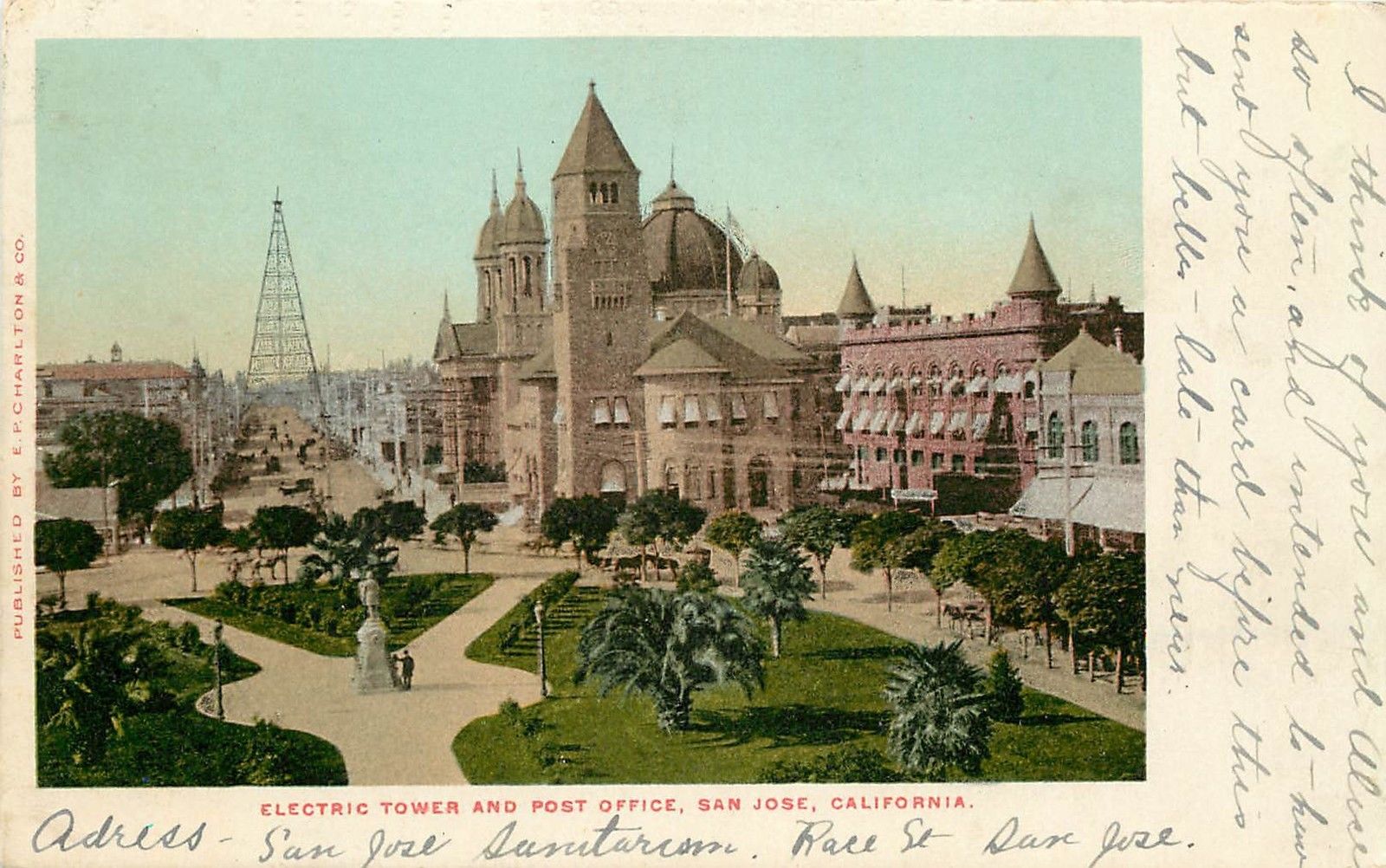 c1906 Postcard; Electric Tower & Post Office, San Jose CA Santa Clara County